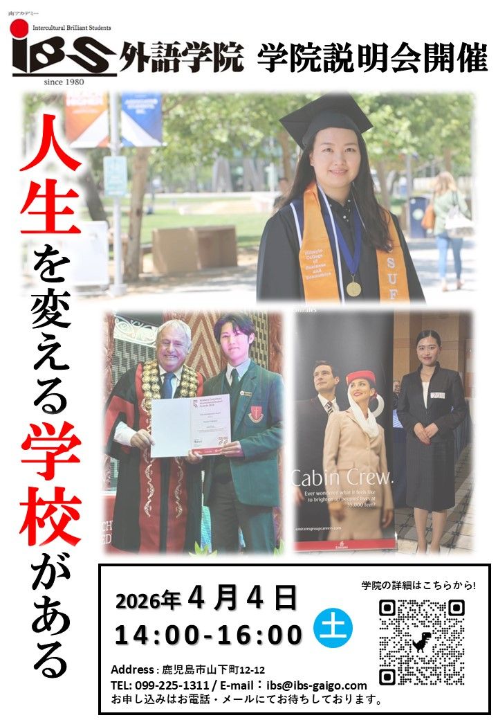 Address: 〒892-0816 鹿児島市山下町12-12 / Tel: 099-225-1311 / E-mail: ibs@ibs-gaigo.com